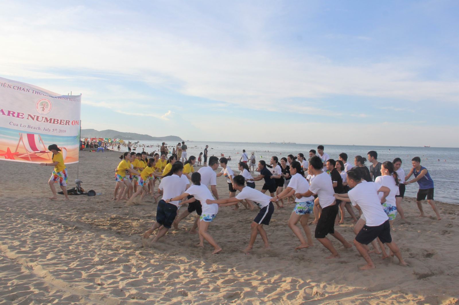 Cái nắng gay gắt của gió biển như càng làm thổi bùng lên tinh thần cháy hết mình của các thành viên Bvctch trong chuỗi các trò chơi Team building. Sau màn khởi động vui nhộn, bốn đội chơi lần lượt phải trải qua các thử thách đầy gay cấn, cam go và không thiếu phần hài hước “cười đến nghiêng ngả”. Để giành chiến thắng trong các trò chơi, không chỉ cần thể lực mà cần cả trí tuệ và hơn hết là tinh thần “không sợ nắng - chơi là thắng” quyết tâm đồng lòng của cả đội.