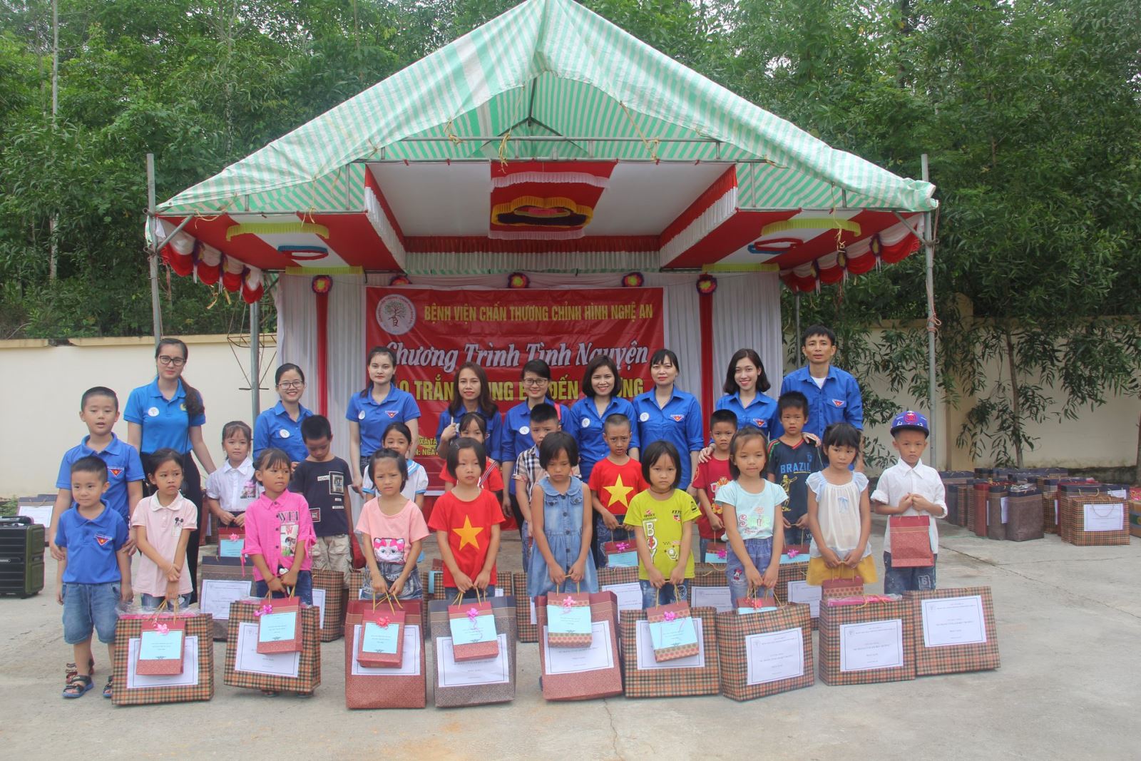 Tại chương trình, thay mặt Ban lãnh đạo và Công đoàn, Đoàn thanh niên bệnh viện đã tặng quà cho 100 em học sinh tiểu học có hoàn cảnh khó khăn ở 3 xã: Tân An, Hương Sơn, Nghĩa Phúc; đặc biệt giúp đỡ cho em Nguyễn Nguyên Lộc là trẻ mồ côi ở xã Nghĩa Phúc.