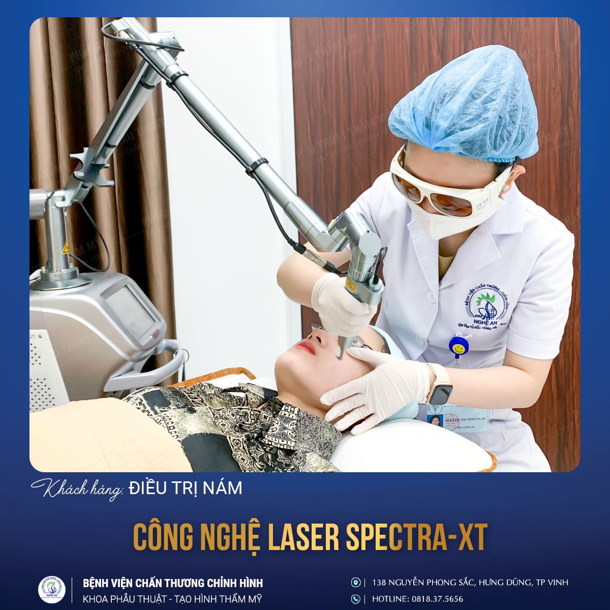 Với hệ thống máy Laser hiện đại, Khoa Phẫu thuật tạo hình thẩm mỹ luôn đón đầu những công nghệ mới, hiệu quả trong điều trị mụn, nám, tàn nhang, đồi mồi, bớt bẩm sinh…