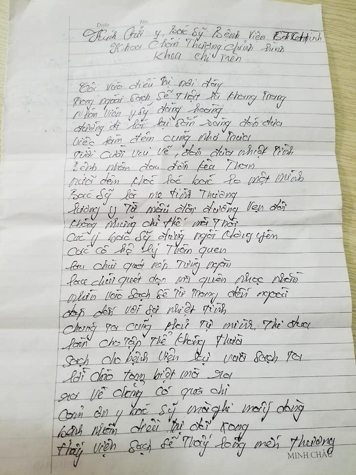 Như những vần thơ dung dị, giàu tình cảm chân thành mà bệnh nhân Chu Văn Toàn quê ở Yên Thành, Nghệ An đã gửi tặng tập thể cán bộ, nhân viên Bệnh viện trước khi xuất viện: