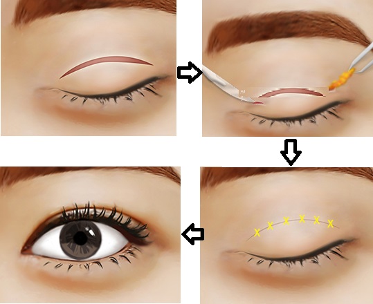Quy trình cắt mắt hai mí an toàn được tiến hành theo 4 bước  sau: