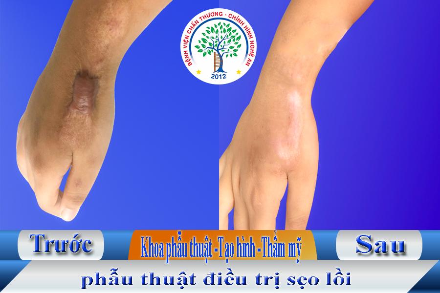 Tại Khoa Phẫu thuật tạo hình thẩm mỹ - BVCTCHNA đang phối hợp các phương pháp điều trị: phẫu thuật, laser, tiêm sẹo kết hợp, băng ép, silicon gel sheet.