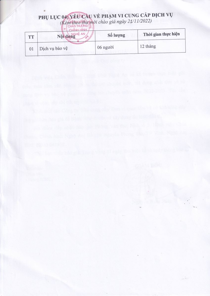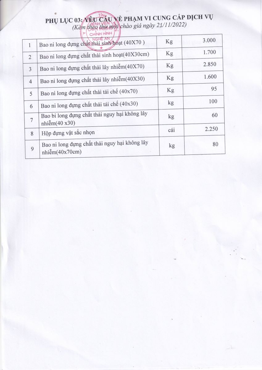 Thư mời chào giá cung cấp VPP, ấn chỉ, túi đựng chất thải và DV bảo vệ